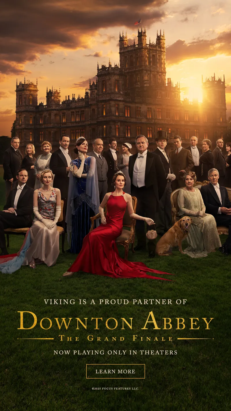 The text on the screen says, “Viking is a proud partner of DOWNTON ABBEY: THE GRAND FINALE. Learn More”